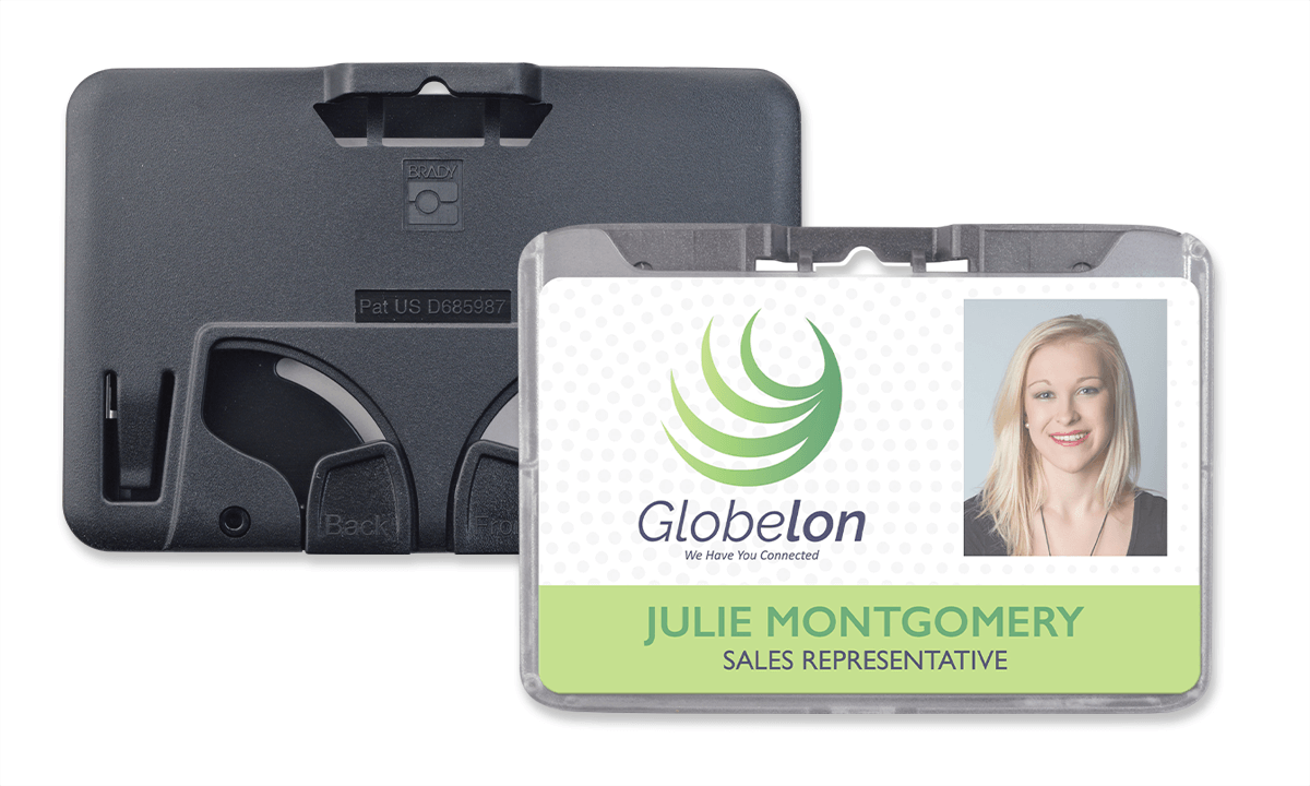 La face avant présente une finition dépolie claire, ce qui la rend parfaite pour l’affichage d’un badge d’identification avec photo, tandis que l’arrière du support comporte deux leviers pratiques pour extraire les cartes du compartiment avant ou arrière avec facilité.