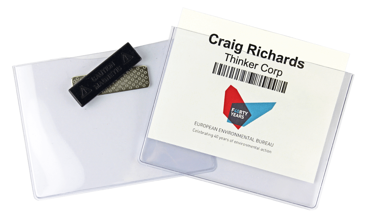 L'accessoire d'identification de prédilection pour vos conférences !Porte-badge nominatif réutilisable en acétate rigide et flexible possédant une attache magnétique.