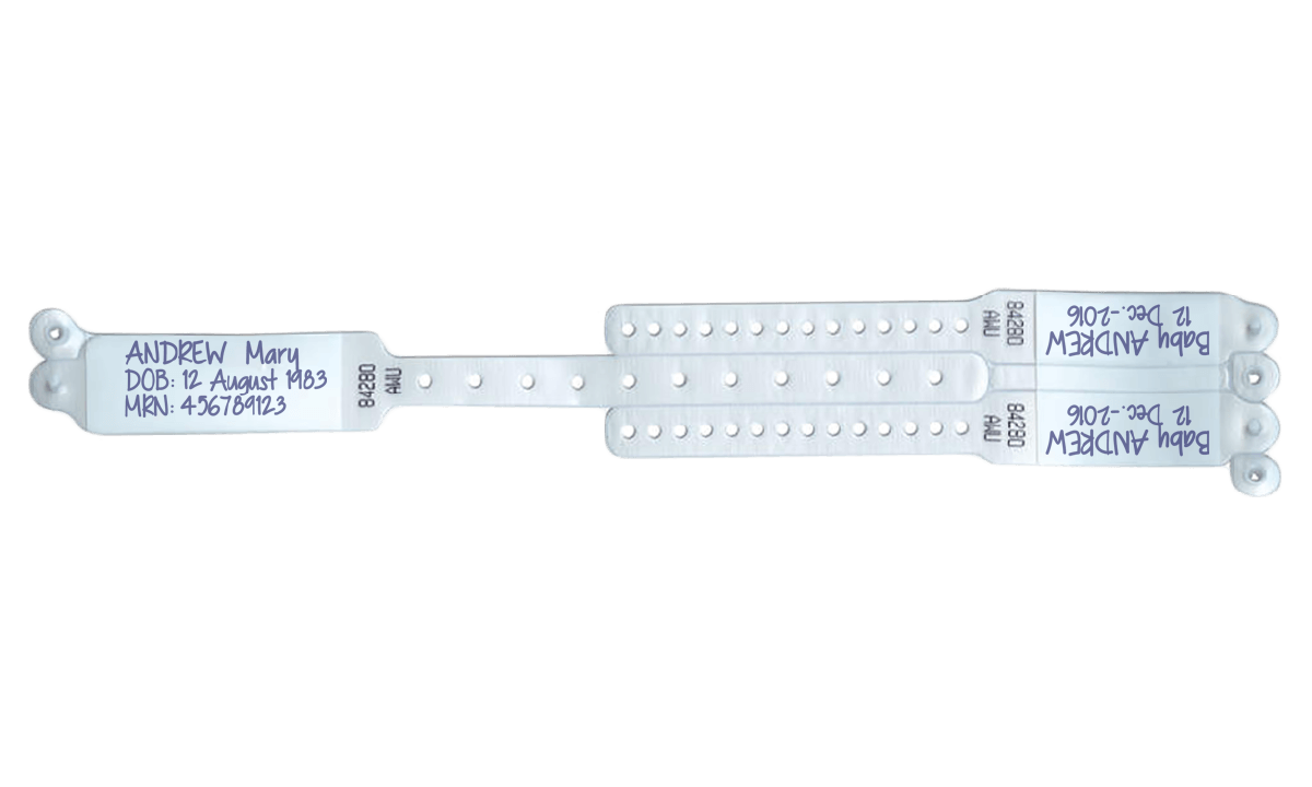Nos bracelets mère-enfant Speedi-Print à inscription directe sont conçus à partir de vinyle doux avec bords non-coupants afin de garantir le confort des patients. Cette boite contient 100 sets de 3 bracelets (1 bracelet taille adulte et 2 bracelets taille enfant).